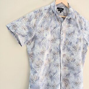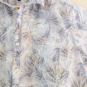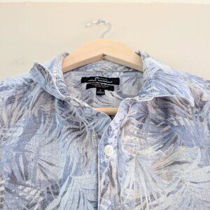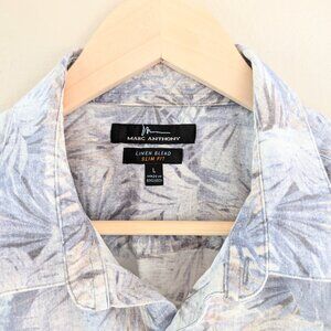 Marc Anthony Cotton Linen Tropical Floral Motif Button Up Shirt Short Sleeve L
