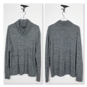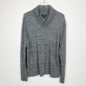 Marc Anthony gray marled slim fit sweater. Ribbed shawl collar. Ribbed cuffs & bottom band. Luxury blend; cotton, cashmere & merino wool. In excellent condition.