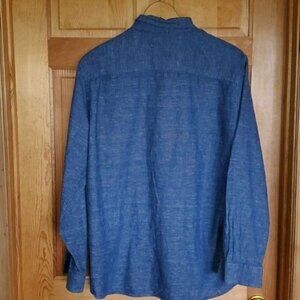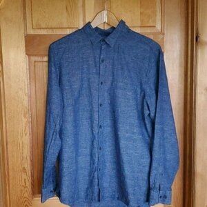 Marc Anthony Linen Blend Slim Fit Sz. XL Blue with repeating details Dress Shirt