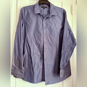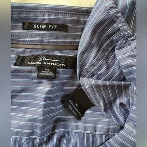 Marc Anthony Slim Fit Button Down Men's Blue Striped Shirt, Size:XL