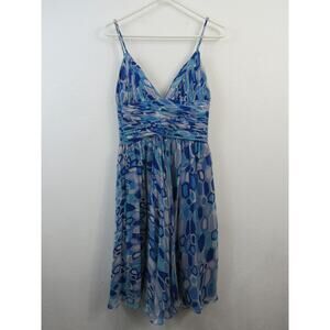 Marc Bouwer Size 4 Y2K Blue Funky Pattern Mini Tank Dress 100% Silk Glamit!