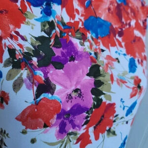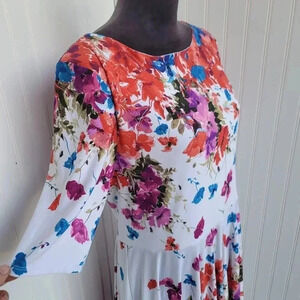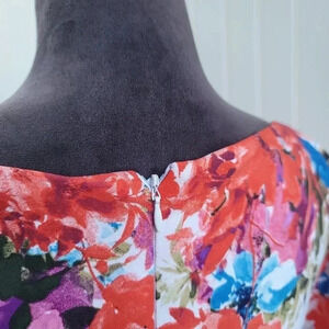 Marc Bouwer Unlimited White Red Blue Floral Print Fit Flare Zipper Back Dress XL