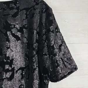 Marc Bouwer Velvet Sequin Shift Dress Size 3X Black Elbow Sleeve Cocktail Party