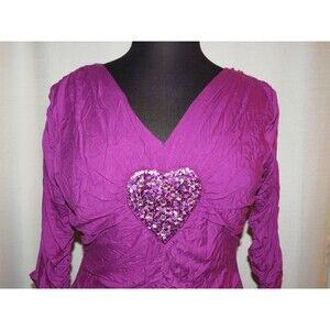 Marc Bouwer size XL magenta sequined heart top with ruching.