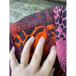 Marc Bouwer size 2X reptile print crepe tie neck button front blouse.