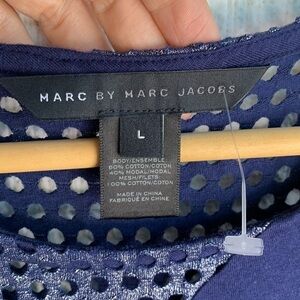 Marc By Marc Jacobs Blue Navy Mesh Cotton Modal Blue Sheath Dress sz L