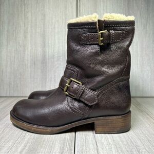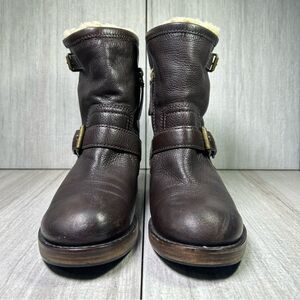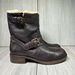 Stylish brown leather ankle boots. Features buckle accents and cozy lining. Perfect for casual wear. Just got them but they’re a touch too small on me. I’d say they fit more like an 8.5
