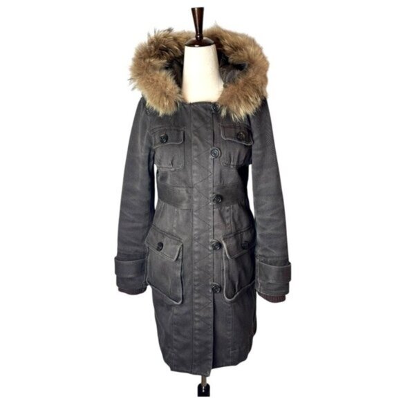 Marc By Marc Jacobs Coat Women 4 Brown Cotton Removable Fur Hood Fishtail Parka Outerwear