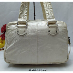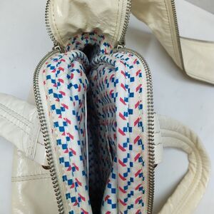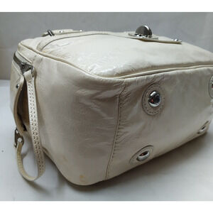 Marc By Marc Jacobs Ivory Patent Leather Pocket Dual Zipper Closure Satchel Bag