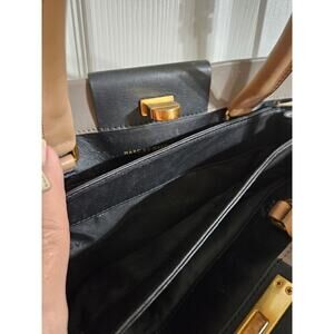Marc By Marc Jacobs Leather Handbag Purse - Pre-Owned - Carried a few times! Top Handle Bag with Adjustable Shoulder Strap. Leather Black and Beige with Gold tone Hardware. Three Interior Pockets. Lock Closure on Front. Details: 15" Shoulder strap 3.5 " Handle Height: 10" Width: 12.5"