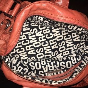 Marc By Marc Jacobs light red leather Handbag. This bag is great. It has a large zippered compartment for everything you need and a front pouch to allow you easy access to other items. There’s a black scuff on the bottom of bag as shown in the picture. This is a beautiful bag. Condition is Pre-owned.