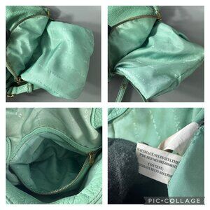 The mint green bag is complete with an adjustable shoulder strap.