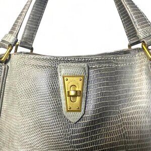 The Marc By Marc Jacobs Moss Grey Multi PVC Tote Bag is a stylish and versatile handbag designed for women. With a sleek design featuring a cloudy gray exterior and matching leather handles, this tote exudes sophistication and practicality. The gray lining adds a touch of elegance, while the durable leather construction ensures longevity. Part of the esteemed MARC JACOBS product line, this tote is perfect for everyday use or special occasions, making it a must-have accessory for any fashion-forward woman.