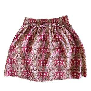 Stylish mini skirt with a pink and cream pattern. Perfect for casual outings.