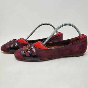 Marc By Marc Jacobs Suede Leather Ballet Flats Maroon Size 37.5 7.5