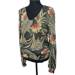 Marc By Marc Jacobs V-Neck Floral Metallic Sweater Size Medium