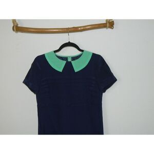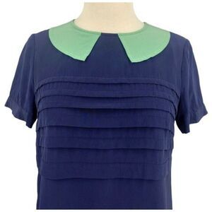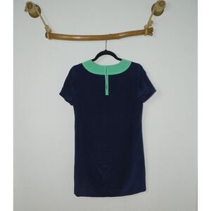 Marc By Marc Jacobs Dress Navy Blue with Green Peter Pan Collar 100% Silk Mini Dress Size 2