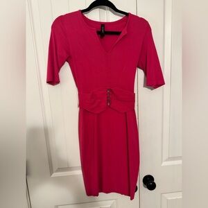 Marc Cain Pink Bodycon Belt Detail Dress. Size/Fabric tags have been removed. Dress is in good condition.