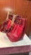 Marc Chantal Shoulder bag red croc pattern leather/Burg. Patent accents goldtone
