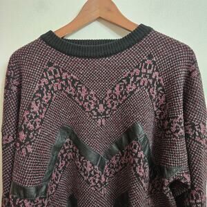 Marc Daniels Vintage 90s Patchwork Knit Sweater Size M Eclectic Grandpa Fairy Grunge Mixed Media Faux Leather Cosby Biggie
