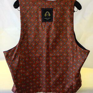 Front is polyester viscose and feels like wool, four button front, 1 watch pocket, two waist pockets, all pockets are still sewn shut, adjustable waist buckle cinchers. Excellent pre-owned condition, like new.