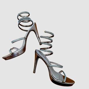 Marc Defang Serene Rose Gold Rhinestone Embellished Wrap Stiletto Heels 9.5