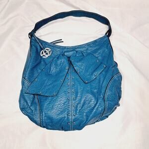 Marc Echo Vegan Leather Turquoise Blue Y2K Bow Detail Zipper Bucket bag