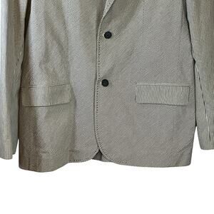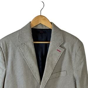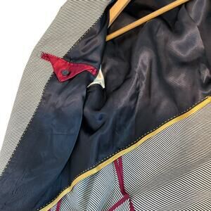 Elevate your style with this striking Marc Ecko blazer! This blazer features a sophisticated striped pattern, a double-vented back for a modern touch, and a comfortable, fully lined interior, 100% Cotton RETAIL $150