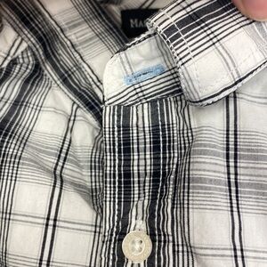 Marc Ecko Black White Plaid Flannel Long Sleeve Button Up