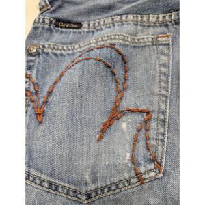 Condition: Preowned; light wear and frayed hem add authentic vintage character. Ripped back Pocket.