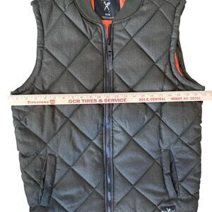 Marc Ecko Cut & Sew Vest Size Medium Brown Quilted Orange Lining Full Zip