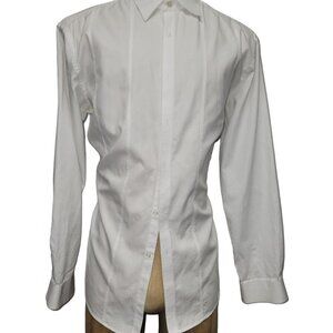 Up for sale is a Marc Ecko long sleeve cotton shirt in size XL. This shirt is perfect for any season and features a white color, button-up closure, and long sleeves. It is suitable for casual or dressy occasions and is made of high-quality cotton material. The shirt has been previously owned but is in excellent shape and ready for a new home. Don't miss out on this stylish and versatile addition to your wardrobe.