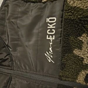Marc Ecko Men Jacket Small Green Camo Fleece Full Zip Logo Cut & Sew Embroidered