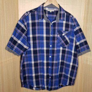 Marc Ecko Mens Ble Plaid Short Sleeve Button Down Shirt 3XLT