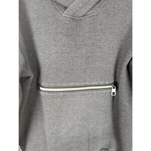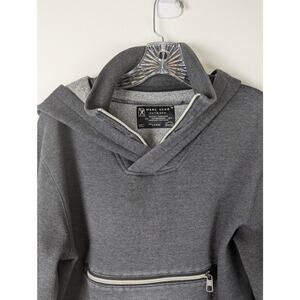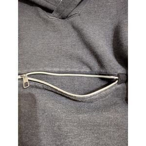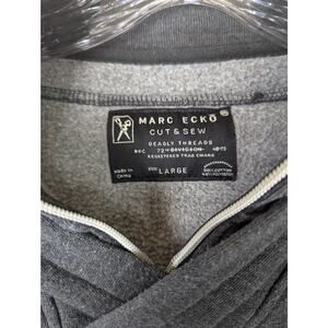 Marc Ecko Mens Hoodie + collar Cut & Sew Sz L Quality Chest 46"C back25" Sleeves 24.5".Charcoal gray black/white zipper trim
