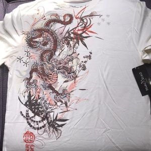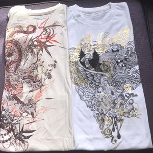 New with tags. Both size medium. Cream color with brown orange and peach snake design. White shirt with black and metallic gold design.