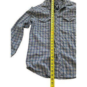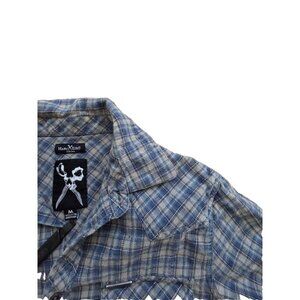 Marc Ecko Shirt Mens Medium Navy Plaid Long Sleeve medium A001237