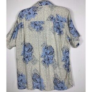 Marc Edwards Shirt Mens Large Blue Floral Linen Blend Short Sleeve Button up