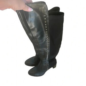 Marc Fischer Lapsure Black Leather Textile Studded Over Knee Boots Size 6