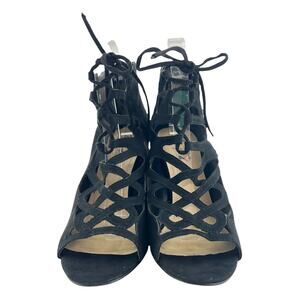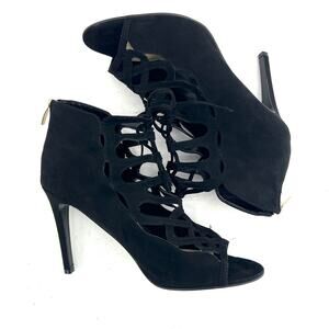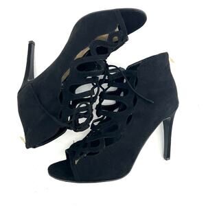 Marc Fisher (10) Urbana Black Faux Suede Lace Up Caged Stiletto Ankle Booties