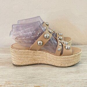 Marc Fisher 6.5 Jalyn Sandals Nude Silver Studs Espadrille Platform Wedge Slides