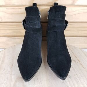 NEW Marc Fisher Yandi Black Suede/Leather Ankle Buckle Boots Western Low Block Heel Side Zip