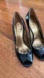 Peep toe navy blue patten leather pumps size 7 1/2 2.5 inch heels