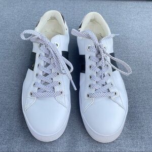 Marc Fisher Animal Party White Zebra Calf Hair Sneakers Size 9. Preowned. Great condition overall! Shows normal wear (see photos). Flaws to note are a few areas on the shoes where the leather is slightly splitting near the rubber sole (see photos). Not super noticeable.