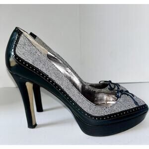 Marc Fisher 8M Navy & Gray Leather & Canvas 4 Inch Heel MFVICA