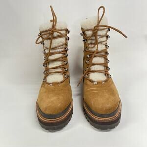 Marc Fisher 9 mlizzie Lizzie Shearling Winter Boots Women brown leather lug