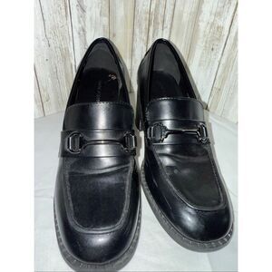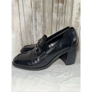 Marc Fisher 90s Inspired Chunky Loafers | Black Faux Leather Block Heel Pumps |