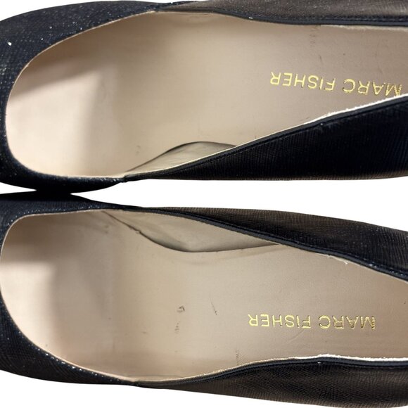 Exuding timeless elegance, these Marc Fisher peep-toe heels combine a sophisticated black textured finish with a charming bow detail. Featuring a sleek stiletto heel, they effortlessly elevate any ensemble while ensuring comfort with their cushioned insole. The open-toe design adds a touch of allure, making these shoes a classic staple for refined style.