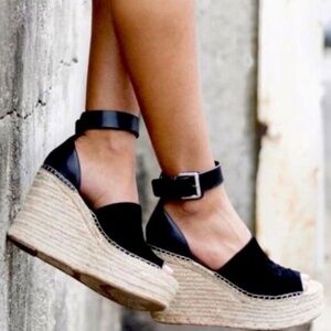 Marc Fisher Adalyn Espadrille Wedge Sandal in Black Suede and Leather