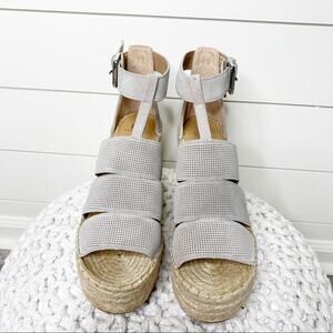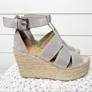 Marc Fisher Adore Strappy Suede Espadrille Platform Wedges Grey Size 9.5M